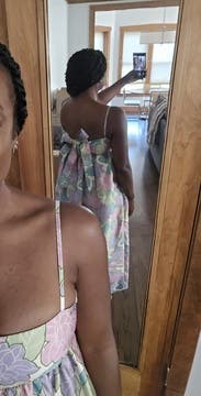 This dress was so fun! It had pockets and was super comfortable. I ended up going with the bigger size because it gave me more room around the chest, while the smaller one looked a bit better from the chest down. However, it was definitely worth sizing up for the comfort aspect! Received so many compliments on this one. So glad I rented! It was perfect for a summer outdoor wedding in hot temps. You really can’t go wrong here!