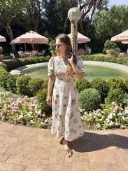 Wore for my friend’s bridal brunch in Palm Beach. Fits true to size. I loved how the sleeves had volume without being too much and the dress pattern was so cute!