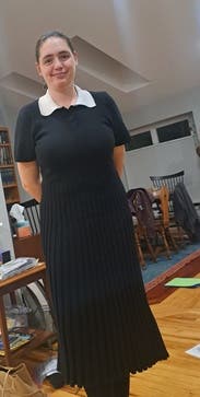 This dress is warm and cozy. Also works for work or going grocery shopping. When I took this photo I felt like Enid from the show Wednesday in it in a very chic way!