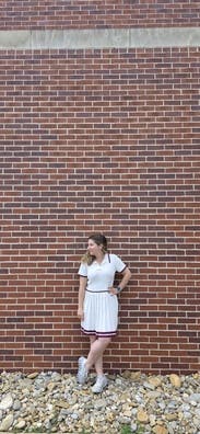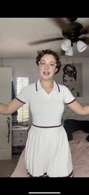I felt like a glamorous tennis player or golfer from the 1920s or 1930s in this beautifully crafted athletic dress. The fabric is thick and luxurious, offering both comfort and style. This was my first time renting from this designer, and since I was between sizes, I decided to go with the larger option. While I might have been able to size down, the larger fit still complements my figure perfectly.