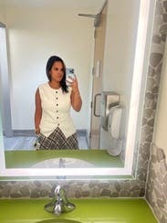 This top provided some flare with a wide leg work slack. The tie in the back helps adjust for different waste and bust sizes so it fell perfectly.