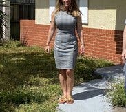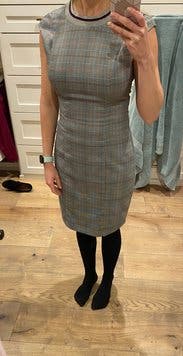 I wore this for work. It was a bit short but I didn't mind too much. The top area was a bit large in the neck, so I had a gap in my underarms. I definitely had to wear spanx for this dress.