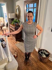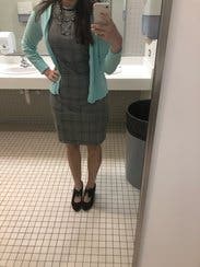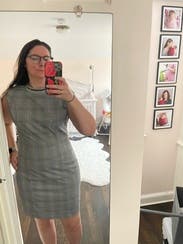 This was cute and looked very professional for work. I wore with a black cardigan and black booties. Material was a great lightweight that didn't get wrinkly. Pic is taken at the end of a long day, so you can see how he wears. Fit was pretty TTS, but if you're between sizes, I would go up rather than down.