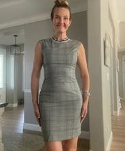 I received a compliment on this dress, which I wore with a black blazer. The only think I didn’t like was the sleeve, which comes up a little too short to be a true cap sleeve, but too long to have the clean look of a sleeveless dress. Blazer or cardi solves the problem.