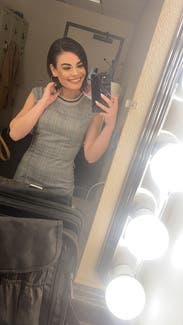 Wore with suit jacket to work and then no jacket for date night. So cute and shows off my curves!