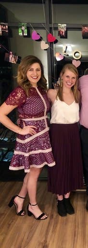 I loved that this dress was conservative, but also flirty. The color combination was fun and easy to match. The material was heavy, but perfect for late winter/early spring. My only complaint was that the panel that covered my chest was barely long enough. I am 34D and I found myself pulling the fabric down throughout the night, I do not know if others would be aware of this, but it made me paranoid.