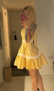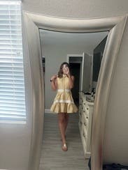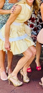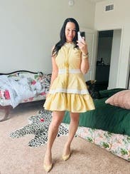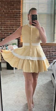 I wore this yellow and white dress to a festive brunch and got so many compliments! It’s beautifully structured and classic, perfect for a daytime event with a touch of flair. It fit snug in the chest, which worked great for me, but something to note if you're fuller on top. Highly recommend for a stylish and fun occasion!