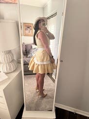 The yellow is soft and flattering, and the white bands cinch you in at all the right places. The skirt has the perfect amount of volume , flirty, feminine, and so easy to move in. I wore it for a daytime event and received nonstop compliments. Lightweight, comfortable, and beautifully tailored.
