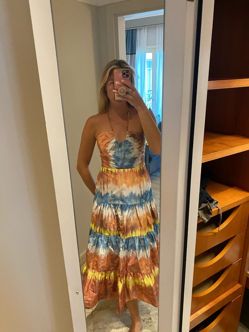 This tiered tie-dyed halter dress by Alexis is giving peak island vibes to your weekend wardrobe.