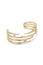 10K gold plated spike cuff with Swarovski crystal accents. No closure. 2.2" in diameter.