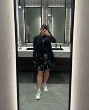 Perfect mix of edgy and chic. Wore to work with a leather jacket. Less shape & more flowy than I expected