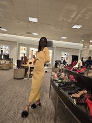 This dress is incredibly elegant. I loved how it hugged the body in all the right places. The fit is sleek, and it really snatches the waist for a flattering, sculpted look. The asymmetrical neckline adds a modern and artistic touch, making the dress feel elevated and unique without being over-designed. The only reason I didn’t purchase it was the price, but if it fits within your budget, it’s a striking and timeless piece that’s sure to turn heads.