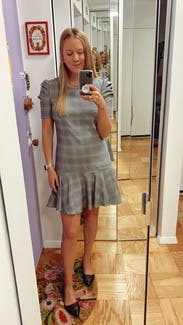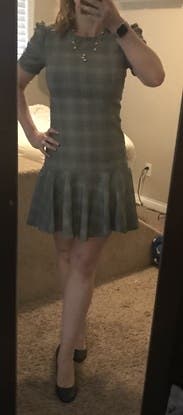 This was great for a day in the office. I received so many compliments. Love the drop waist- it's good for bigger hips! The dress fit perfectly and is true to size. I did feel it was a bit shorter than I would usually prefer.