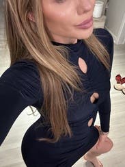 I loved this dress, slinky sexy material. Cutouts are cute and I could still wear a low cut bra. Perfect dress for a cold night out in Vegas