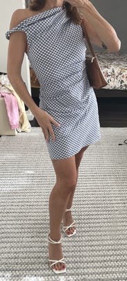 Got so many compliments on this dress! Short when sitting down, but fine length when standing. Comfortable on a hot summer night.