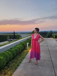 It was too big on top for me so I didn’t end up wearing it. I’m small chested so this was just not the ideal dress for me. But otherwise very pretty and could work for someone with a different body type!