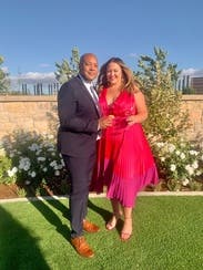 gorgeous dress with a plunging V-neckline. Need a gorgeous necklace and a great belt to pull this one off