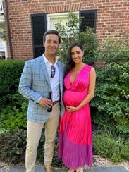I'm 7 months pregnant and it was such a great, bump-friendly choice! I wore this on a hot summer day for a wedding, didn't show sweat at all (unless you really looked), and was flowy and comfortable. I will say, if you wear it while pregnant, you'll have to tape up the top to fit more snugly from the shoulders since the dress is designed to have its bodice fall lower than my belly would allow. Overall, fantastic / fun / comfy option for a wedding!