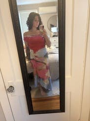 Ordered this for my anniversary and the photos don’t do it justice! The print is vibrant, unique, and such a statement piece, I got compliments all night. The fit was flattering and comfortable, hugging in the right places without feeling restrictive. 💕 I usually find off-the-shoulder styles a little limiting, but this one gave me full range of motion while still staying put, which was a bonus. Truly a standout dress for a special occasion. Ordered a 0 and 2, ended up wearing the 0.