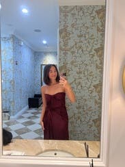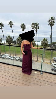 This dress is absolutely stunning! I felt so confident wearing it and received compliments all night long. The fit was perfect—comfortable and secure without needing constant adjustment like other strapless dresses I've tried. The length worked well with my very high heels, but if you want it to appear longer, I’d recommend shorter heels. The color is gorgeous and perfect for fall. I wore this to a black-tie wedding and it was elegant, flattering, and event-appropriate. Highly recommend!