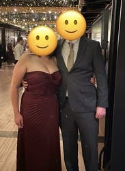 This dress was the best! It was the most compliments I think I’ve ever gotten, fit well (though a little long when I took my heels off), and absolutely gorgeous. Matched the black tie wedding perfectly.