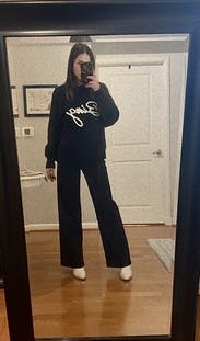 Loved wearing this sweater around but it wasn't very comfortable material. I found myself wanting to get out of it after the day. Wish that wasn't the case since it's adorable.