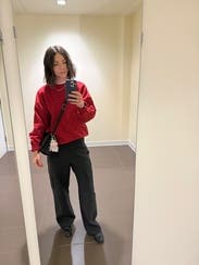 This sweater is awesome, so comfortable and love the cherry red color. Tempted to buy it. Size down as it’s an oversized fit.