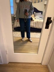 I see Anine Bing sweatshirt, I rent Anine Bing sweatshirt. As always, a great fit and so comfortable. It fits TTS so if you want a baggier or slouchier vibe I would size up. I got my true size and paired with jeans and sneakers for an elevated casual look.