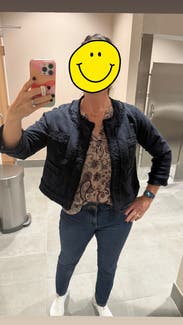 Really cute jacket. Fits like your favorite blue jean jacket but more tailored for an office setting!