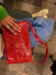 This medium-sized red bag adds a pop of color to your everyday outfit and it’s just the right size. Must rent.