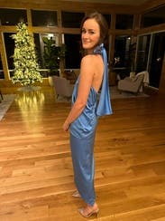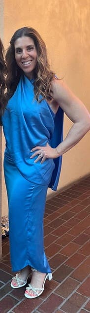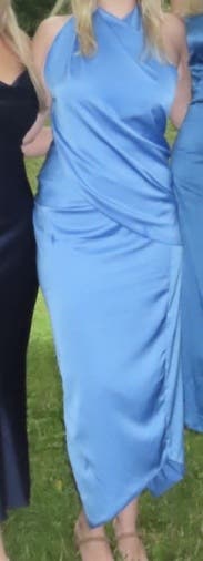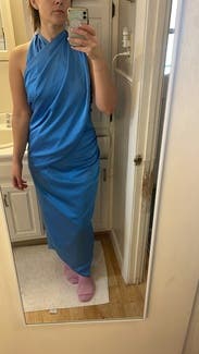 Loved this dress and got tons of compliments! It’s a beautiful color blue and very unique.