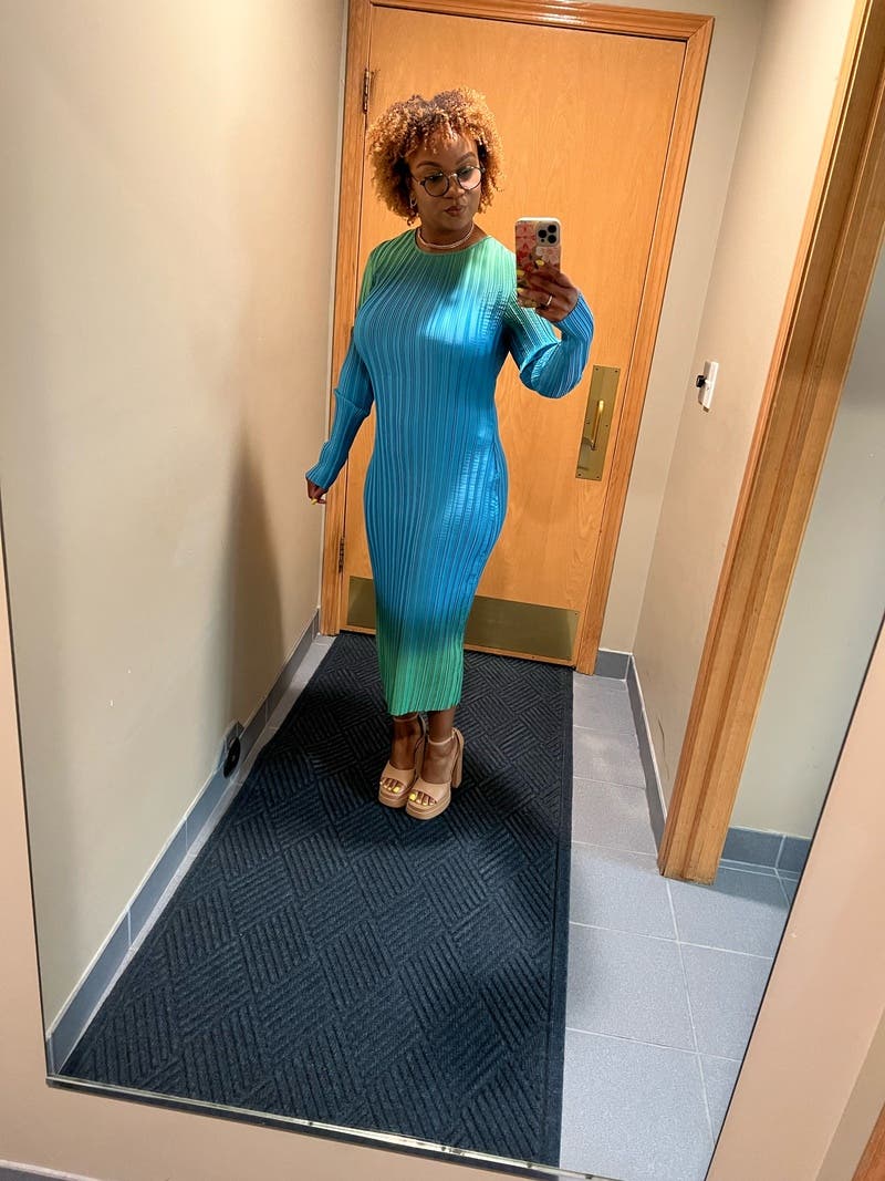 Add some color to your seasonal wardrobe with this vibrant ombre dress by Arthur Apparel.