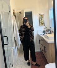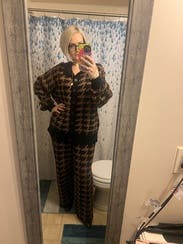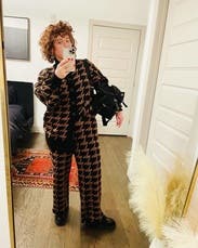 Loved this whole get up. Rented pants too. Wore as a set and also mixed and matched. Crowd pleaser. So comfy - couldn’t have worn them straight into bed. Jacket is best oversized. Medium felt right - I’m generally size 6.