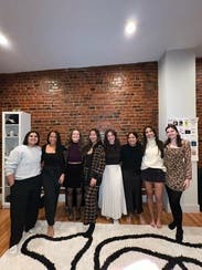 Loved the look of this set and wore the sweater and pants on their own, as well. Blonde hair, fair skin 140lbs nice for my coloring, too. Would rent again! Last wintery set before spring. Even fit my 20 week bump.