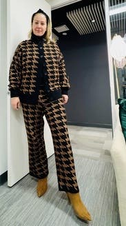I loved this set and wore the pieces separately as well. I’m usually a m-l and the medium was still oversized in a good way. I liked this buttoned up all the way best, rather than as an open cardigan, I think it made more of a statement this way. Wore it with matching pants, jeans, and faux leather shorts. Amazing.