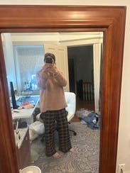 These pants gave me a butt for once! I wore this to the airport to fly to Europe on an overnight flight. Super warm (sometimes I was too warm) and the pants sort of grew over time so they got really long. I got tons of compliments on the whole set.