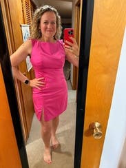 Picture doesn't do the color justice. The pink is beautiful an the fit was perfect! I typically am a 4 in dresses but got a 6 and was glad I did. Almost purchased this one!