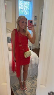 I wore this dress to host a holiday party in NYC and I felt like a million bucks! The dress is an attention-grabbing bright and bold red color that hugged my curves. I also loved the cut-outs on the side and the beautiful material. However, the dress was big in the chest area and tight around my thighs. The sleeveless side of the dress slouched down a few times throughout the night, revealing my half-bra, which was annoying. In addition, the side cuts are high, so you could see the bottom of my bra at times. As a result, I ended up tucking the dress underneath my bra. This dress may fit well on average-height women with slim hips and thighs and big boobs who can fill out the chest area. (I'm short with a small chest and thick thighs.) I would also highly suggest wearing a red half-bra or a bra that matches your skin tone just in case it shows.
