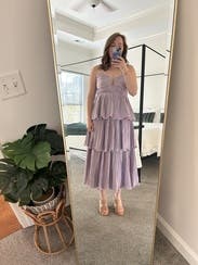 Loved this dress SO much 10/10. It was so comfortable all night, is lined, and was tight enough up top to allow me to dance with no worries about slippage. The fabric is silky and looks stunning in light. Also love the tiers! This dress seemed a little longer than I expected (I thought it would be a bit shorter not a full length) but I am also short. Would recommend for any wedding guests!