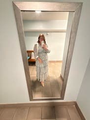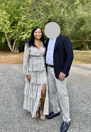 Rent this stunning dress! Great fit. Endless compliments. Love that you can tie in the back and further accentuate your waistline. Flowing and stunning. Slit help to keep my legs cool on a warmer summer day. Overall so complimenting and it’s one of my favorite rentals recently.