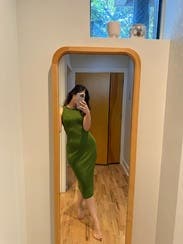 I loved this and wanted to keep it but felt it was more expensive than I would spend. But the color was perfect and the fit was great. The way the bottom fell when standing still was a little less than ideal looking but that was my only thing. I got tons of compliments on it!