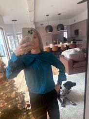 I loved this top so much that I bought it. My recommended size was 8 but I rented it again in size 6 and bought that instead. It can be worn with a fun bow in the front or tied in the back. Work staple and transitions well to date night outfit when paired with jeans and heels.
