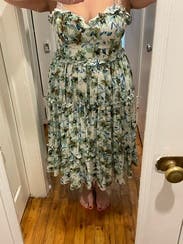 Dress fit and material is very nice. A little too floraly for what I was looking for so ended up wearing something else. Would consider renting again for a different event