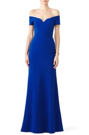 With its off-the-shoulder silhouette and sweetheart neckline, this standout blue style is a must for your evening-wear wardrobe. Try it with the Gold Crystal Layered Cuff by Alexis Bittar.
