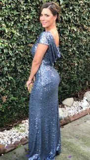 Wonderful dress for a black tie wedding. Got tons of compliments. I rented both the 12L and the 10L. The 12 fit best and was super comfortable to move/dance in. I wore 3 inch heels and it was the perfect length. Towards the end of the night, my arms were rubbed raw from the sequins but I had expected that (I'm an enthusiastic dancer).