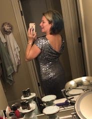 I usually wear a size 8 or 10 but I got a 12 so the dress wasn't too form-fitting. It was really hot outside while taking pictures but this dress kept me pretty cool. I had to wear a sticky bra because the dress is too thin to wear without a bra and the back is very low. The color and sequins make my figure look amazing! I got a ton of compliments! I highly recommend this dress.