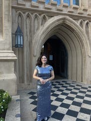 Rented for sorority convention and it was a great dress. Comfortable and stretchy for sitting in it 4 hours.