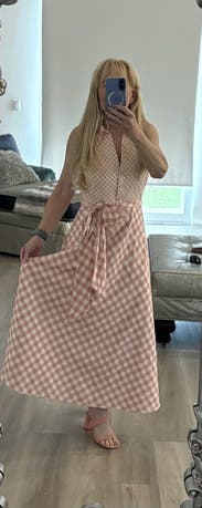 Loved wearing this dress to dinner with my girlfriends. Vintage vibe and really flattering in the waist. The top area was a bit loose for me, but that’s usually how it is lol. Recommend!!