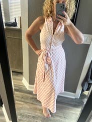 Love the fit of this dress, comfortable and cute halter style, flowy and perfect for the warm weather. Received tons of compliments.