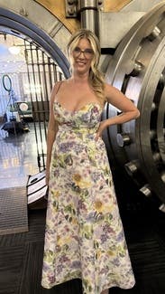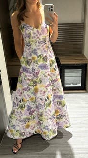 This dress was such a showstopper! I got so many compliments. Great for a formal summer wedding, very light weight and breathable. If you have a larger bust I would size up one size. Would re-rent in the future!